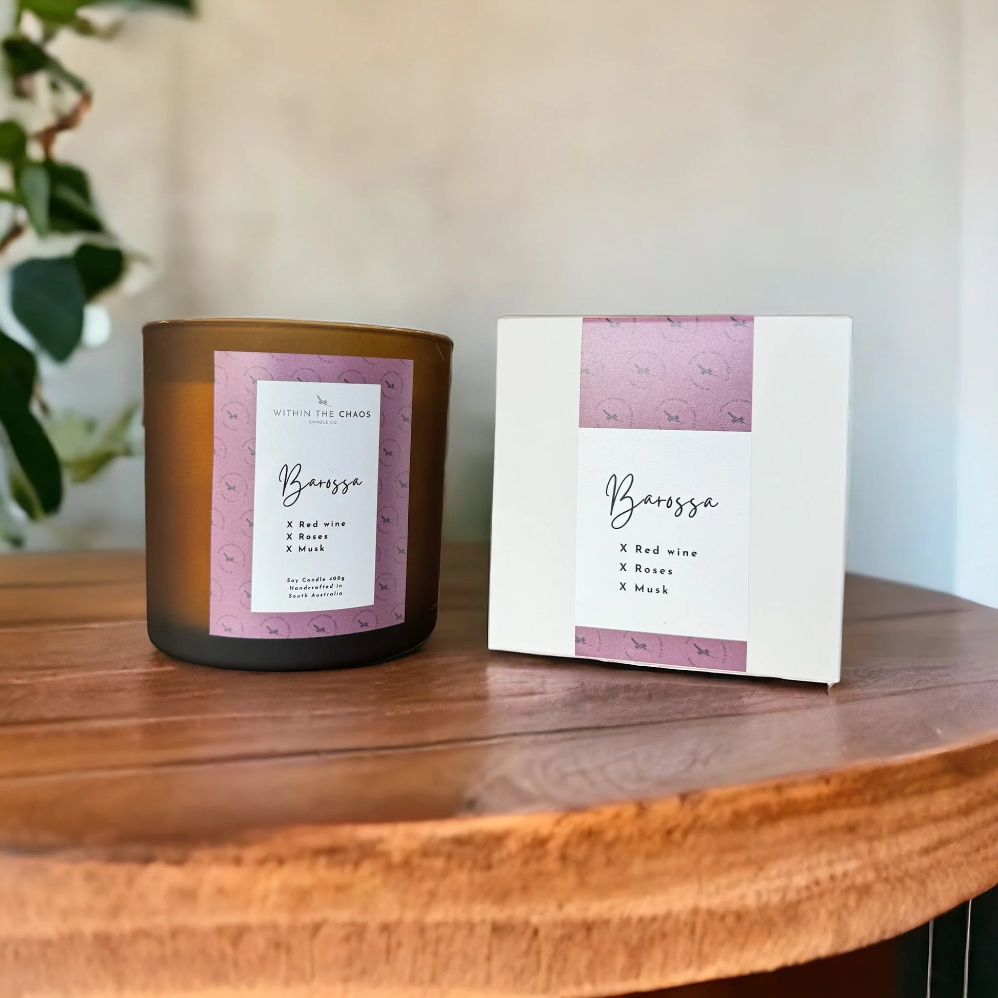 An earthy scent encompassing notes of rich red wine, sweet roses and musk. This candle represents the gorgeous Barossa Valley wine region, and is a luxe heady fragrance. This is one of our stronger fragrances and fills any space with a rich aroma.